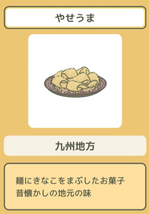 大分縣的特色點心,它是在精白米粉或小麥粉攪拌而成的細長團子上裹上黃豆粉而做出的食物,也寫作“八瀨馬”、“瘦馬”。