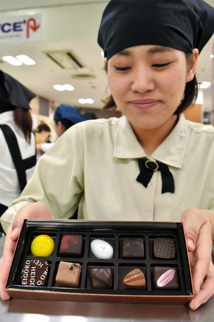 柜臺里還有玫瑰花形的巧克力,凸顯出去年流行語大賞的“曬美照”意識。另外,瞄準年輕人以及義理巧克力的需求,還出現了每個79日元(約合人民幣4.6元)、可任意組合個數的巧克力套裝。(編譯:邵敏 審稿:陳建軍)