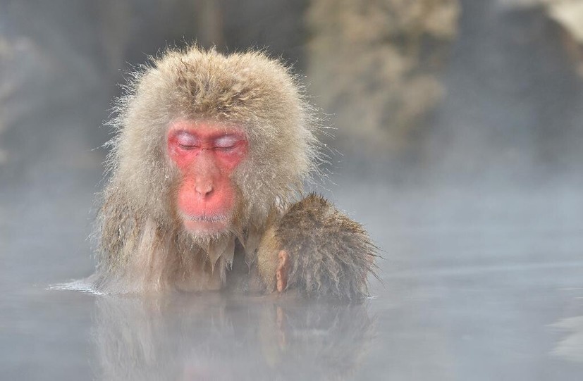 長野地獄谷野猿公苑的雪猴在泡溫泉(資料圖)