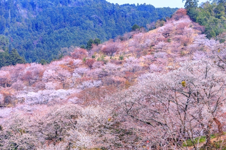 奈良縣吉野山每個季節都有著不同美景。春季,這里是著名的賞櫻地;櫻花花落后,則是紫陽花盛開的季節;夏季,吉野山被一片新綠覆蓋;秋季可看紅葉,冬季則可觀雪景。