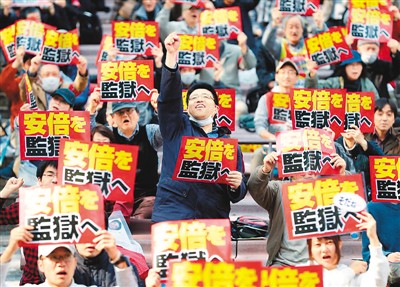 圖為3月25日,日本民眾在東京集會,抗議安倍內閣篡改森友學園“地價門”相關文件,要求把安倍關進監獄。