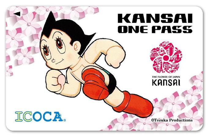 2018年度的IC卡“KANSAI ONE PASS”采用了第一部輸出到海外的日本動畫片《鐵臂阿童木》的設計元素,并附帶關西廣域鐵路線路地圖以外,還能在大概200多處旅游設施享受優惠。
