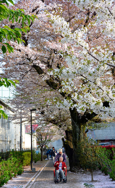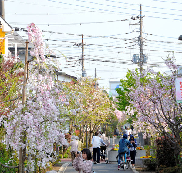 此地原本是二戰后因使用灌溉用水而著名的堤壩旁的櫻花步道。后來,此地發展成為城郊住宅區,衰敗的步道樹難逃被砍伐的命運,居民們便發起了恢復林蔭道的行動。3年前,經過多方努力,此地建成了擁有多個品種的櫻花以及3萬5千株花卉的無障礙式步行道,成為全年約有100萬人在此駐足的賞櫻勝地。
