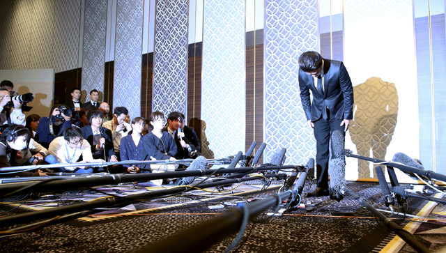 山口達也在記者會上致歉(圖片來源:朝日新聞)