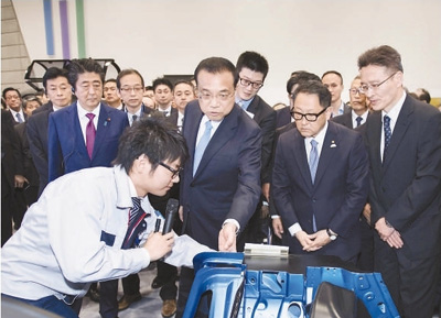 李克強指出,當前中國正在加強創新體系建設。我此次訪問日本,同日方就加強兩國創新合作與對話達成共識,希望包括豐田公司在內的日方企業抓住機遇,進一步深化對華合作,實現從“制造”到“智造”的升級,實現更高層次的互利共贏。
