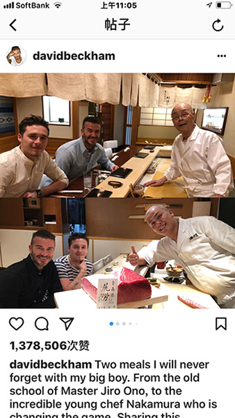 貝克漢姆在Instagram投稿與“壽司之神”合影