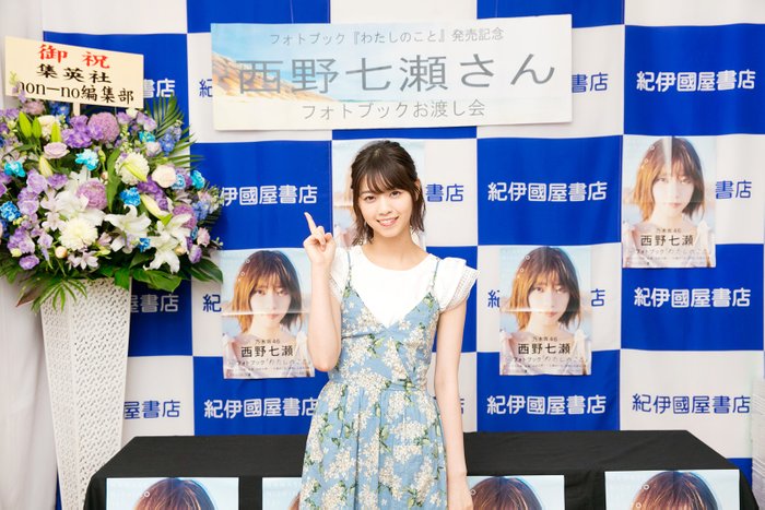 人民網東京5月31日電 日本頻道綜合日本時尚娛樂網站Modelpress報道,女子偶像組合“乃木坂46”成員西野七瀨27日為紀念其首部寫真書(photo book)《關于我》的發售,在紀伊國屋書店Grand Front大阪店舉辦了簽售會。