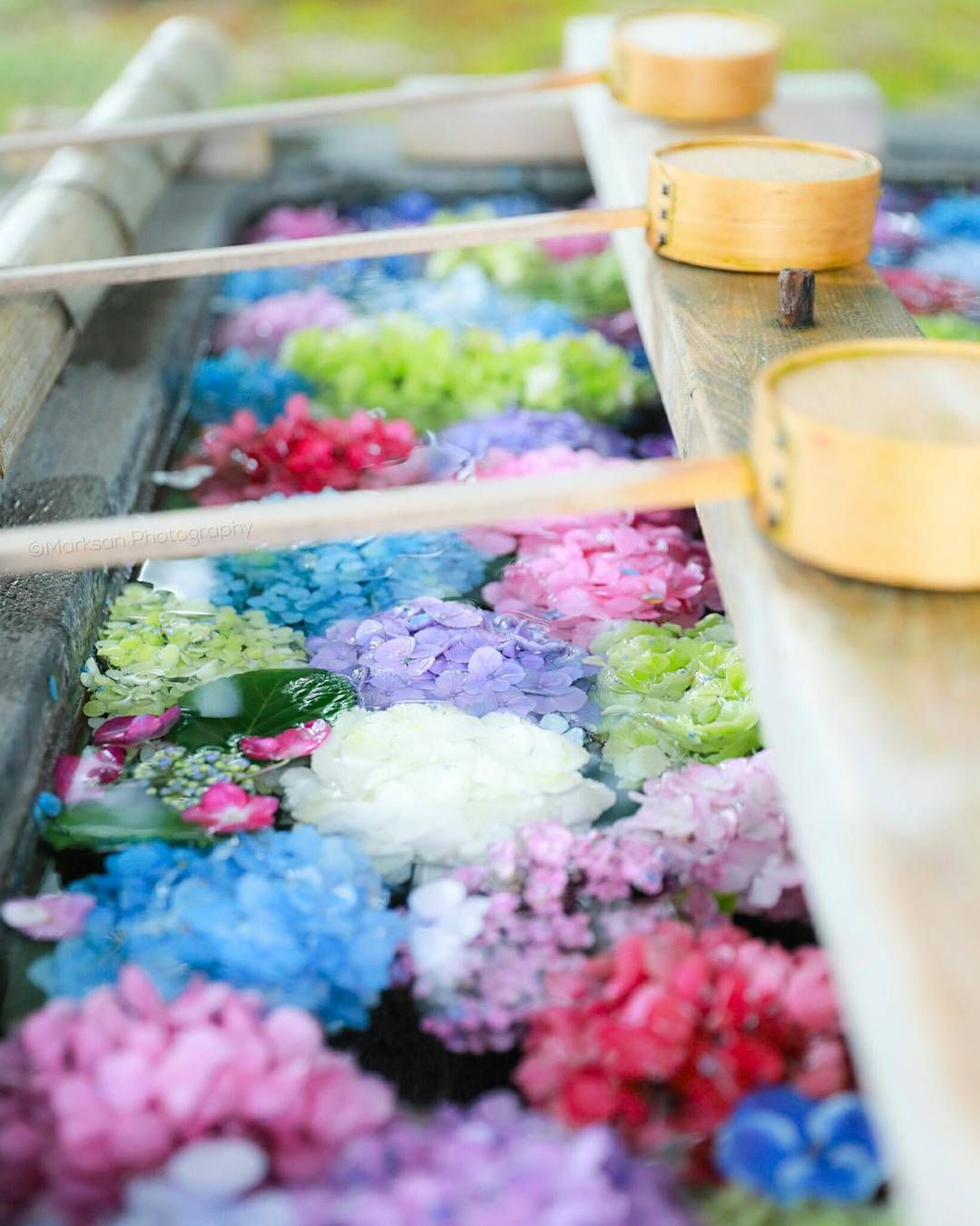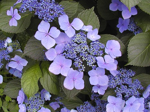 日本最常見的繡球花是洋繡球,是日本原產額繡球花的改良品種。 洋繡球和額繡球花雖是同種,但是洋繡球里的花大多是裝飾花,呈球狀,而額繡球只有周邊一圈是裝飾花。