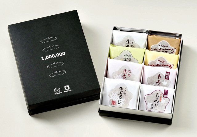 在裝有8個“饅頭”的甜點盒子上,畫有“R360coupe”、“RX-7”、“roadsterRF”等5種馬自達歷代名車的剪影。每盒饅頭的含稅價格是1千日元。