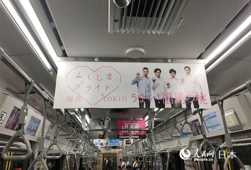 東京地鐵內懸掛的福島桃子宣傳海報,日本天團TOKIO代言(7月19日攝)。