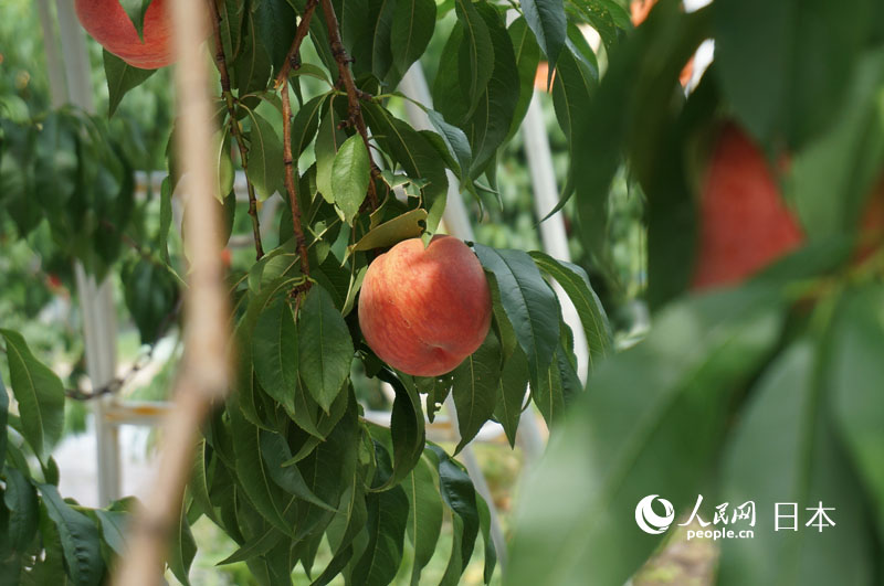 福島縣一處果園內已成熟的桃子(7月21日攝)。據果園主人介紹,今年桃子成熟的時間較往年早一些;而最晚的品種,成熟大約需要5個月。該果園共種有18個品種的桃子,其中包括福島縣獨自研發的品種。