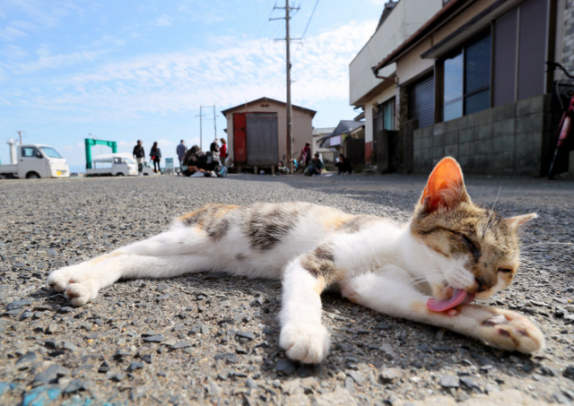 福岡縣新宮町的相島,位于海上8公里的一處名為玄界灘的地方。周圍不是沙灘,而是被海水侵蝕的玄武巖!度毡緯洝泛汀度f葉集》中也記載了這里獨特的地貌。因為海水養分豐富有不少釣魚的好地點,而這里的貓咪們更是稔熟于心。常會在釣魚人靜靜等待收獲的時候前去分一杯羹,很是招人喜愛。由于當地冬天的時候可謂是寒風凜冽,這時貓咪就會聚在一起取暖出現“貓堆”的現象。說不定在哪個地方就有一團毛球們靠在一起。