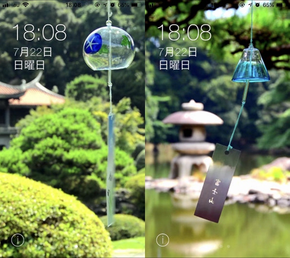 在這款風鈴APP中,我們不僅可以看到在日本傳統家庭中風鈴搖曳的畫面,而且可以欣賞風鈴聲,感受絲絲涼意。APP中共有四種不同式樣、不同音色的風鈴可供選擇,用戶可根據個人喜好進行切換。