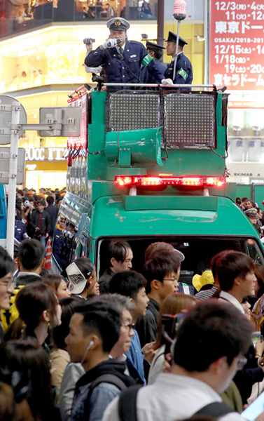 警視廳在十字路口附近安排了數百名警力,并用“DJ 警察”引導從車站出來的行人。警方從晚7時開始對擁擠的人群進行疏導,并對與十字路口相鄰的文化村大街和道玄坂一帶實施車輛禁行。澀谷警署于當日夜里,還以妨礙公務和涉嫌性騷擾的罪名各逮捕了兩名現行犯。