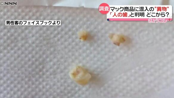 人民網東京11月9日電 據日本電視臺報道,今年8月一名顧客在日本金澤市的一家麥當勞吃漢堡時發現異物,麥當勞經調查后確認,該異物為人的牙齒。