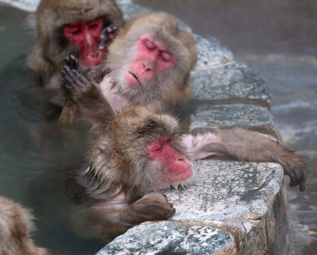 函館熱帶植物園里正在泡溫泉的猴子(圖片來源:朝日新聞網站)