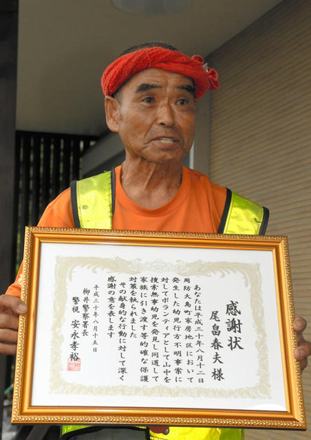 2018年8月,山口縣一名兩歲男孩在山林與家人走失,當地警方接到報警后,出動千人展開救援活動,最終無果。78歲的尾畠春夫在了解情況后,自告奮勇前往事發地參與救援,在男孩走失68小時后,最終找到了他。據悉,尾畠春夫一直以來默默無聞的參加各種志愿活動,比如家鄉登山道路的修整工作、全國各地的災后重建工作等,被人們稱為“超級志愿者”。