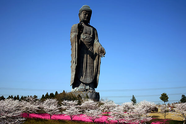 櫻花時節的牛久大佛