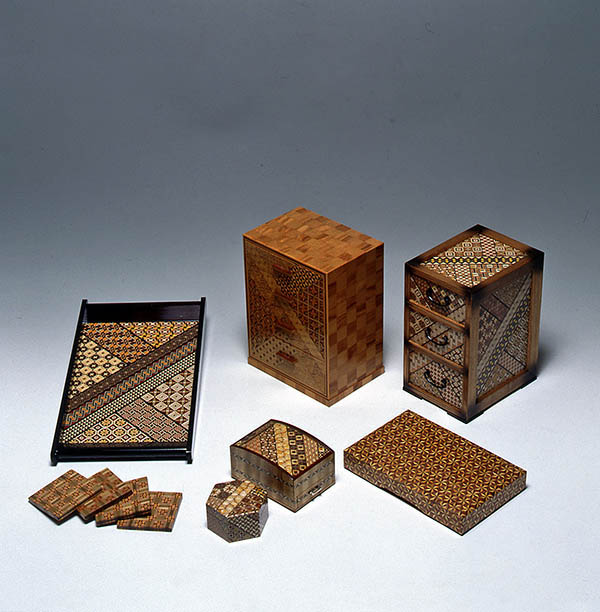 箱根木片拼花織品的制作開始于江戶時期箱根的農村,巧用木頭的自然顏色,制作成幾何形狀,小田原、箱根地區是這種工藝品唯一的產地。