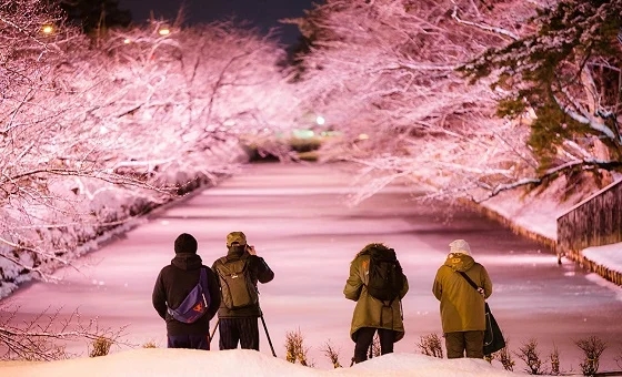日本人喜歡櫻花,櫻花飄舞的姿態給了日本人各種美好的想象。將落在水上的櫻花花瓣匯聚成帶狀漂流而去的景象比作“花筏”。