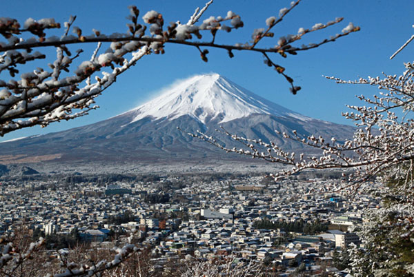 人民網東京4月10日電 據《朝日新聞》網站報道,四月初,由于受高空冷空氣影響,日本山梨縣山區出現降雪。在富士吉田市的新倉山淺間公園,染井吉野櫻的粉色花蕾已然含苞待放,卻好似披上一件銀裝般被片片雪花覆蓋。以富士山為背景的這片景色雖然不合時令,卻讓眾游客沉迷其中。