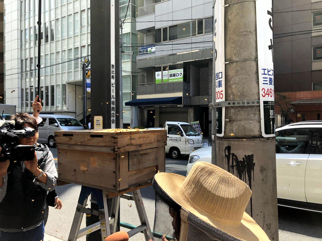 東京繁華街區·惠比壽出現上萬只蜜蜂 嚇壞路人(圖片來源:朝日新聞網站)