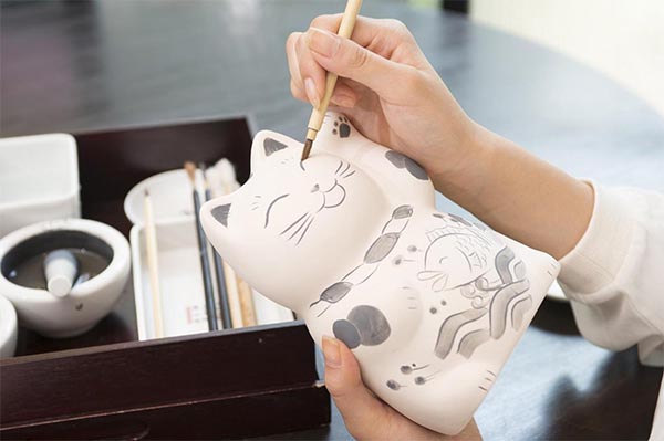 在博物館里嘗試自己繪制招財貓的圖案,制作屬于自己的招財貓也是值得嘗試的體驗。