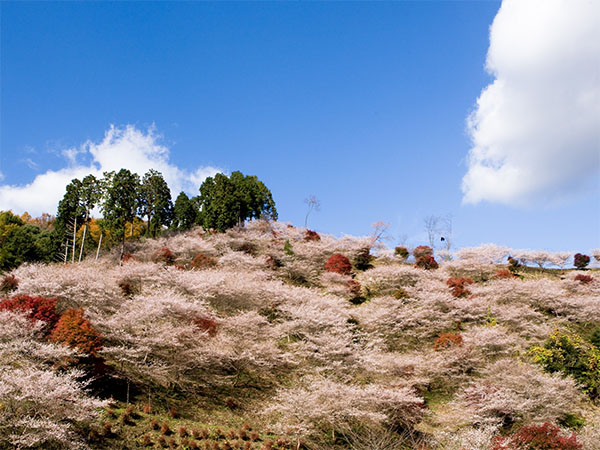 在豐田市的小原地區,種植著大約1萬棵的“四季櫻”,這種櫻花每年春季和秋季各開一回。到了秋天,櫻花的粉色同紅葉的紅色交相輝映,每年的11月中旬左右都能看到這樣的美景。