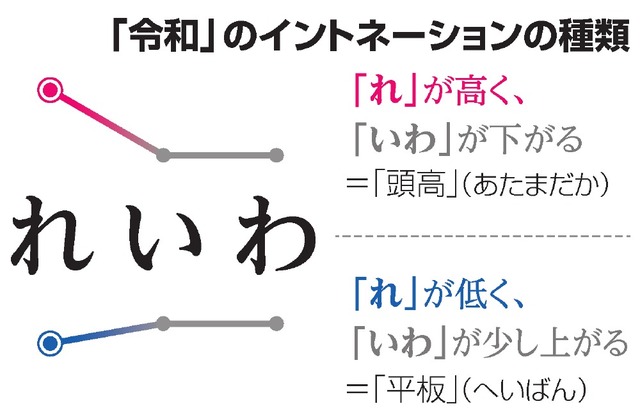 根據《朝日新聞》網站4月4日報道,新年號公布后,日本NHK電視臺將“令和”的讀音暫定為重音在「れ」的頭高型;朝日電視臺稱“根據目前情況,推薦使用頭高型讀音”;TBS電視臺則采用了平板型讀音,并表示“各界讀音尚未統一,一般情況下,第二個字為‘和’的詞,多采用平板型讀音。之后也會根據普及情況靈活應對”;日本電視臺則表示“尚未確定”。