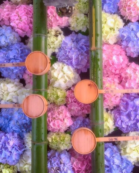 楊谷寺內種植了約30種、5000株繡球花,為京都最大規模。6月23日,楊谷寺“繡球花節”開幕,而今年,慕名來看繡球花手水的人尤其多。同時,楊谷寺還在繡球季限量推出了“繡球花朱印”,吸引了許多游客。