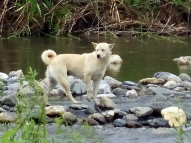 桂川河岸目擊到的野狗。(圖片來源:日本《朝日新聞》網站)