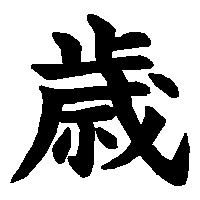 在日本,表示年齡時,可以使用「才」作為「歳」的簡寫。一般在日本小學階段,為方便低學年學生書寫,老師會教授「才」來表示年齡;而進入初中,則開始使用書寫比較復雜的「歳」。雖然本義與年齡無關,但由于書寫方便,「才」現在已逐漸為人們廣泛使用。在電視上,由于「歳」筆畫太多,在字幕中不容易被辨識,因此也常常使用「才」來代替。