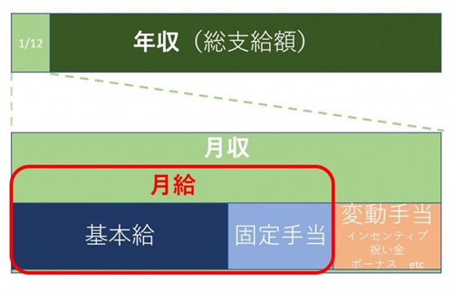 因為包含獎金及其他副業收入,所以有這些收入的話,“月収>月給”。