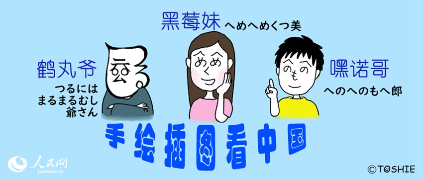 人民網日文版推出中日文欄目《手繪插畫看中國》,由日籍專家手繪插圖,通過“鶴丸爺”「つるにはまるまるむし爺さん」、“嘿諾哥”「へのへのもへ郎」和“黑莓妹”「へめへめくつ美」三個登場人物,介紹中國和日本在社會文化、時事新聞等多個領域的新鮮事,幫助兩國讀者加深交流及理解。
