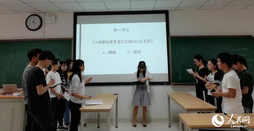 竹澤真利在課余時間和同學交流。了解現在中國大學生的興趣愛好。