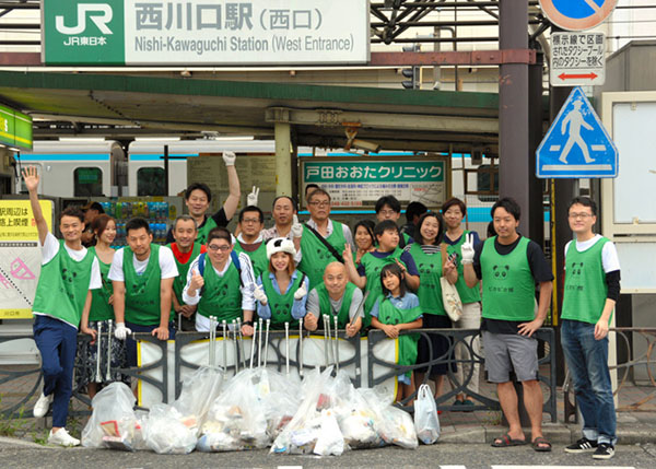 6日下午4點,“四川麻辣燙”西川口店前聚集了近30名男男女女,有大人也有小孩。他們是“美麗西川口團隊”的成員;顒拥陌l起者是這家店的老板AYA(36歲),在她的招呼下,大家紛紛走向街區,開始默默地撿起了垃圾。煙頭、空罐、塑料瓶……。特別是自動販賣機和垃圾回收站附近扔著很多垃圾。