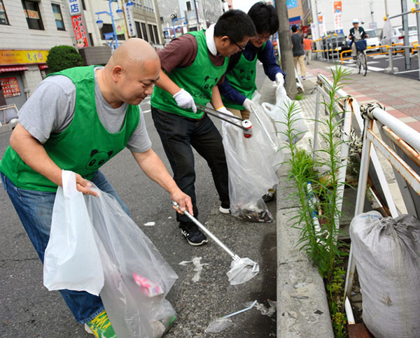 志愿者們在撿垃圾。(圖片來源:日本《朝日新聞》網站)