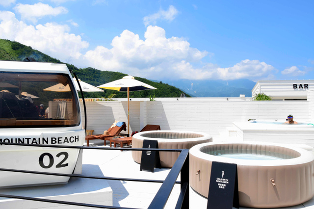 “HAKUBA MOUNTAIN BIEACH”的桑拿和泡泡浴浴缸。(圖片來源:日本《朝日新聞》網站)