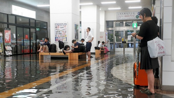 日本佐賀迎來罕見強降雨 JR車站內積水達5cm(圖片來源:朝日新聞網站)