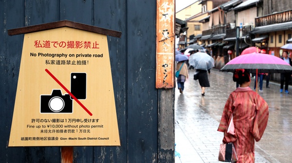 目前,在以祇園為中心,半徑約1km的范圍內,游客的手機上均會自動收到相關信息,點擊后可跳轉中英文雙語的詳細介紹網頁,其中包括“未經允許不得拍攝舞妓照片”、“不得觸碰燈籠”,私自闖入私有土地或是坐在町屋的“犬矢來”上都有可能被處以罰款。目前,這些信息可發送至裝有相應軟件的智能手機及京都市內住宿設施免費租借出的大約5800部手機上。該試驗從9月30日開始,預計于12月8日截止。(編譯:袁蒙 審稿:陳建軍)
