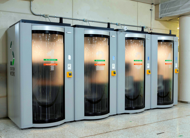 這間辦公室的四邊長約有1.2米,高約2.3米,有一張能放下筆記本的桌子以及配套的沙發,還有電源插座和充電用的USB接口。其屋頂是密閉的,四壁也經過隔音加工,能夠安心打電話不必為四周的雜音煩心。(編譯:許文金 審稿:陳建軍)