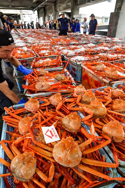 日本兵庫舉行今年首次紅楚蟹競拍 曾賣出一只10萬日元高價(圖片來源:朝日新聞網站)