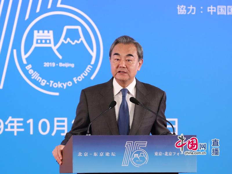 圖片說明:國務委員、外交部部長王毅在第十五屆“北京—東京論壇”致辭。