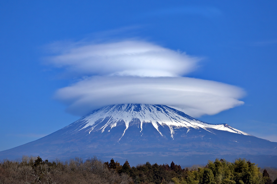 山梨縣突現降雪 披上銀裝的櫻花與富士山交相輝映