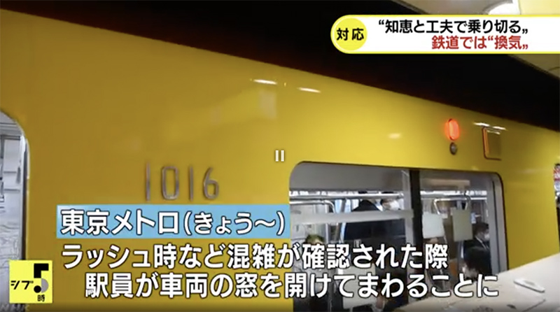 6家鐵路運輸公司開始在車內向乘客進行廣播,通知將采取開車窗運行措施。(NHK電視臺視頻截圖)