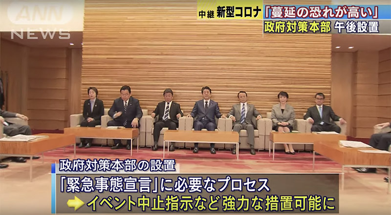 日本首相安倍晉三督促盡快成立“政府對策本部”。(日本朝日電視臺視頻截圖)