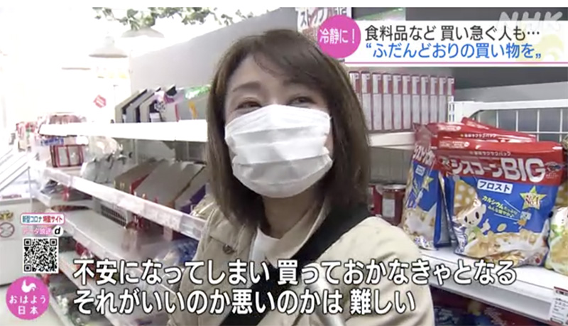 日本民眾稱,雖然無法判斷到底應不應該囤東西,但出于恐慌還是買了很多。(圖片來源視頻截圖)
