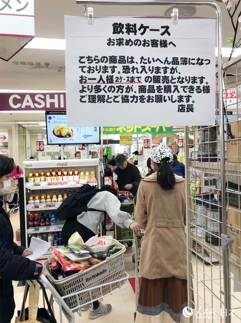 人民網東京3月27日電(李沐航)綜合日本媒體報道,為控制疫情發展,日本首都圈的東京都、埼玉縣、神奈川縣、千葉縣、山梨縣、栃木縣、群馬縣和靜岡縣各地方政府相繼呼吁民眾本周末減少不必要的外出。受此影響,26日起大批市民涌進東京都內的各大超市,大量購買食品和生活用品等,導致部分商品出現缺貨。業界團體表示目前物流運輸正常,缺貨商品近期內也將恢復供貨,呼吁民眾冷靜行動,不要恐慌。