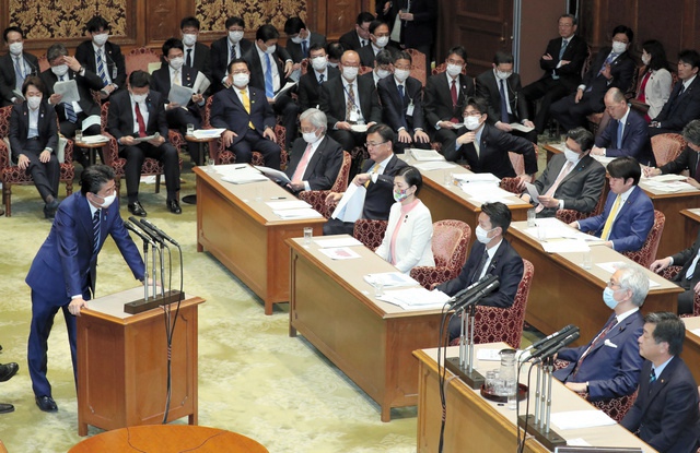 (日本首相安倍晉三4月1日在參議院決算委員會上進行答辯。圖片來源:《朝日新聞》)