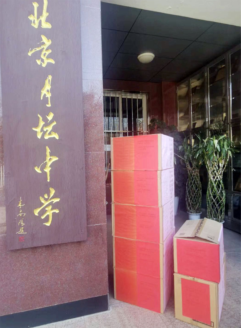 北京月壇中學畢業生所捐贈的物資已于4日由校方寄往日本友好校。